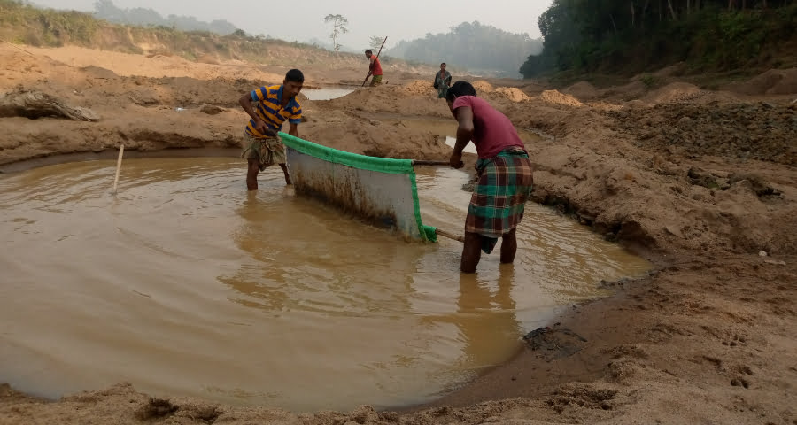 নদী থেকে নুড়ি পাথর তুলে জীবিকা নির্বাহ