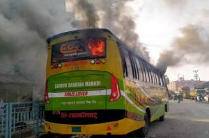 বাসের চালক স্বাধীন সরকার বলেন, বাসটি দূর্জয় মোড়ে থামানোর ৫ মিনিটের ভিতরে হঠাৎ পিছন থেকে একজন যাত্রী আগুন লাগার বিষয়টি চিৎকার করে বলার সাথে সাথে গাড়ির মধ্যে বালতিতে থাকা পানি দিয়ে আগুন নেভানোর চেষ্টা করি। কিন্তু আগুন দ্রুত ছড়িয়ে পড়ায় ফায়ার সার্ভিসকে খবর দেয়া হয়।