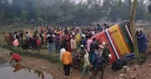 ময়মনসিংহের হালুয়াঘাটে বনভোজন (পিকনিক) থেকে ফেরার পথে চাকা ফেটে নিয়ন্ত্রণ হারিয়ে পুকুর পড়ে গেছে একটি বাস। এ ঘটনায় অন্তত আট জন আহত হয়েছেন।