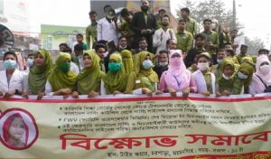 কারিগরি মুক্ত নার্সিং শিক্ষার দাবিতে ময়মনসিংহে বিক্ষোভ মিছিল ও সমাবেশ অনুষ্ঠিত হয়েছে।