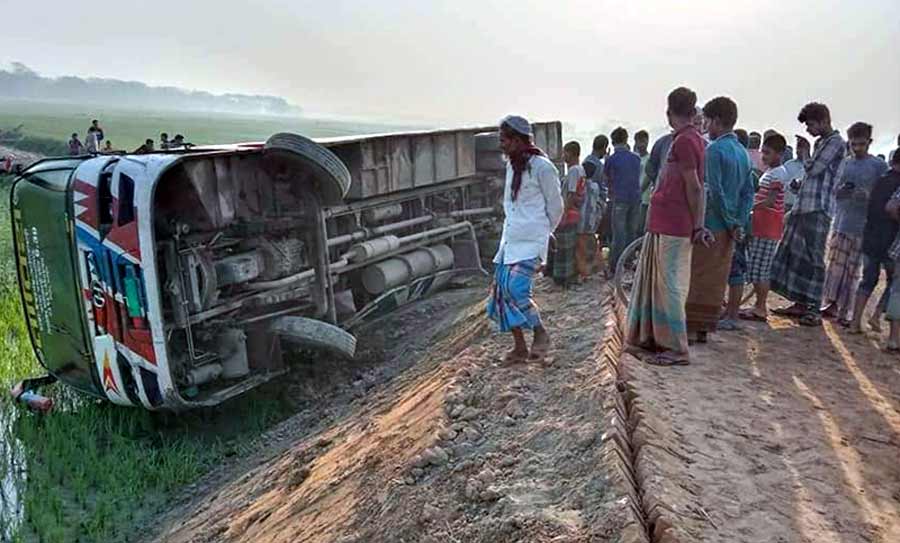ময়মনসিংহের ঈশ্বরগঞ্জ উপজেলার আঠারবাড়ি-ঈশ্বরগঞ্জ আঞ্চলিক সড়কে একটি যাত্রীবাহী বাস উল্টে গেলেও অল্পের জন্য রক্ষা পেয়েছেন ১০ যাত্রী। আজ বৃহস্পতিবার সকালে এ দুর্ঘটনা ঘটে।